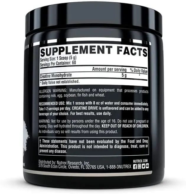 - Calidad premium fabricada en los Estados Unidos: fabricado con orgullo en los Estados Unidos por una empresa estadounidense real con más de 20 años de experiencia. La creatina Nutrex Research es ultra pura, micronizada y libre de rellenos o aditivos, diseñada para atletas que esperan resultados reales. Y para nuestros amigos españoles, puedes encontrarnos buscando; creatina para hombres o creatina monohidratada para mujeres.