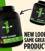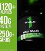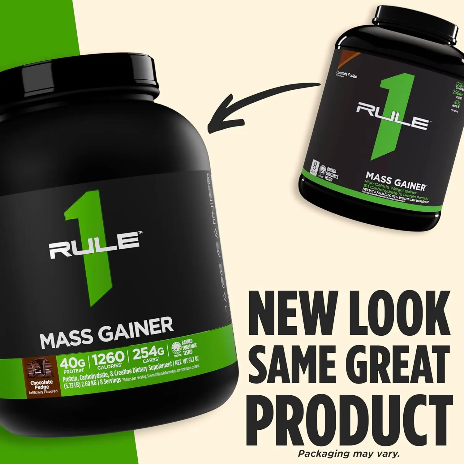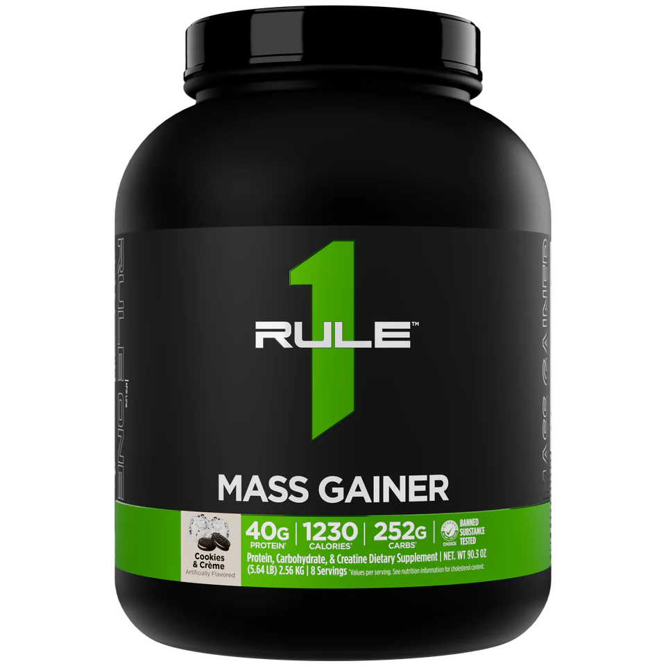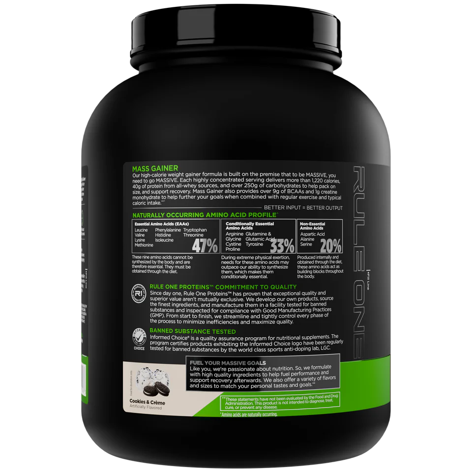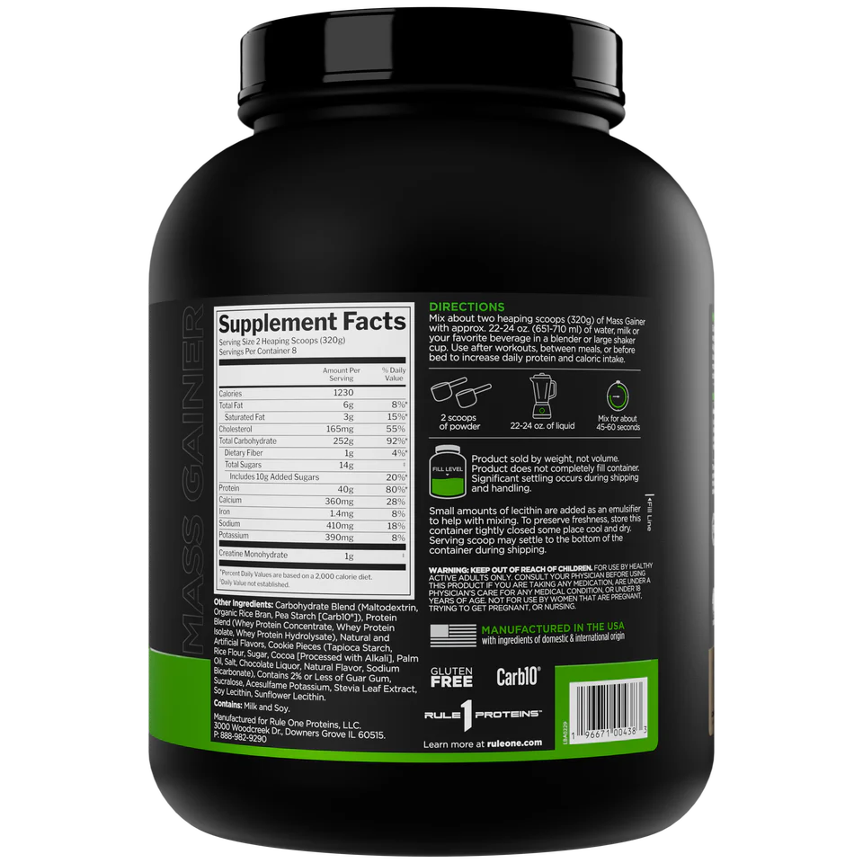 Rule 1 Mass Gainer – Fórmula de aumento de peso alta en calorías con más de 1,220 calorías, mezcla de carbohidratos complejos de 250g+, 40g de proteína de suero total por porción (8 porciones, Cookies
