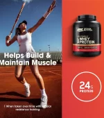 Gold Standard 100% Whey™ utiliza aislados de proteína de suero (WPI), la forma más pura y de mayor calidad disponible. Su fórmula combina aislados microfiltrados, concentrado ultrafiltrado y péptidos hidrolizados HydroWhey® para ofrecer 24 gramos de proteína por porción, favoreciendo el desarrollo muscular y una absorción rápida.